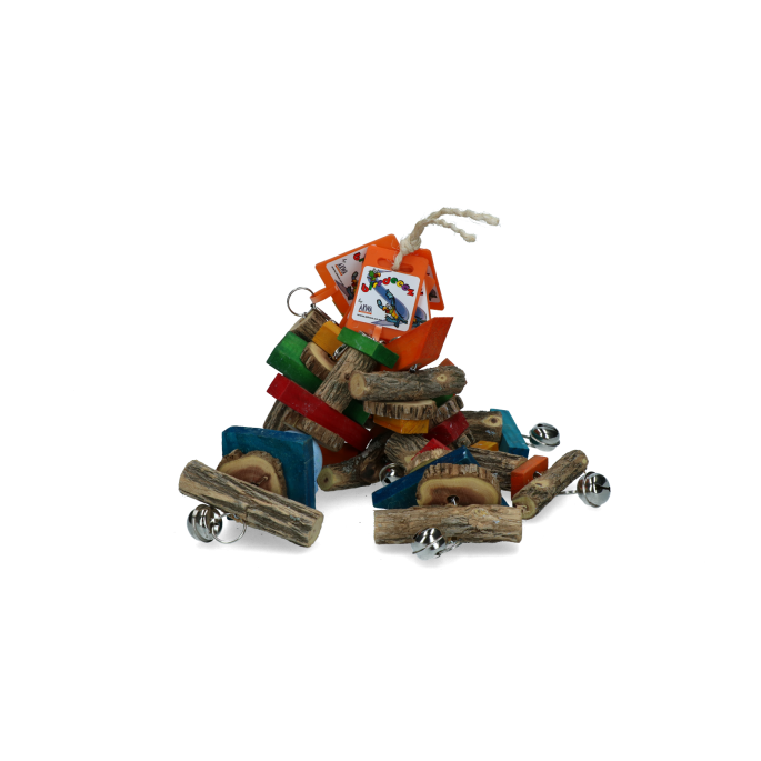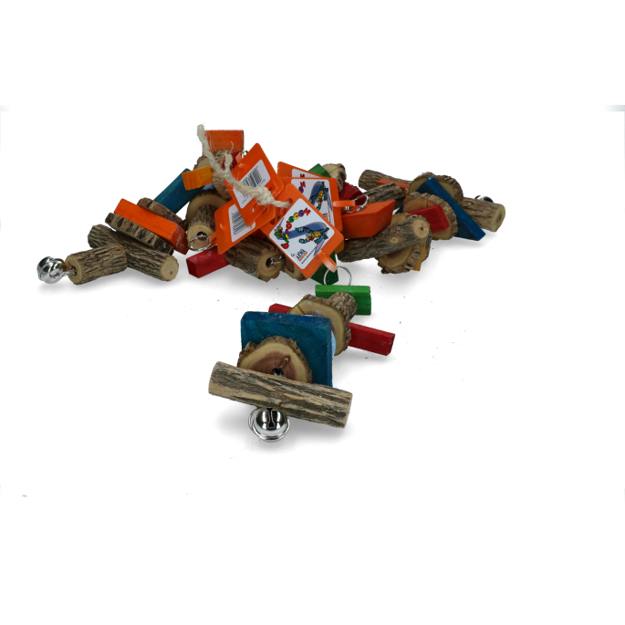 Vrolijk de kooi van uw vogel op met deze kleurrijke vogelspeeltjes. Deze set bestaat uit 6 verschillende speeltjes. Met belletjes, vrolijk gekleurde stukjes hout en mineralen. Leuk om mee af te wisselen of aan te vullen.Â