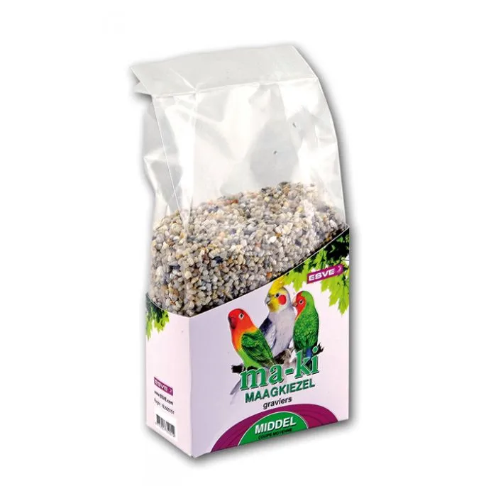 Uw vogel heeft een spiermaag en hebben daarom net als in de natuur maagkiezel nodig op het opgenomen voedsel te vermalen. Het is daarom zeer belangrijk en mag dan ook niet ontbreken. Door het opnemen van MA-KI maagkiezel krijgt Uw vogel een betere spijsvertering, komen er meer voedingssappen vrij, welke de conditie, weerstand en de rui van uw vogel bevorderen.