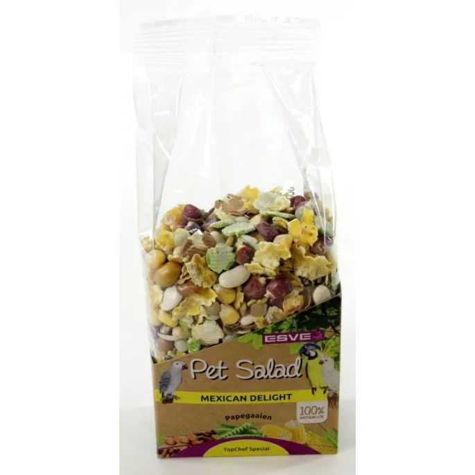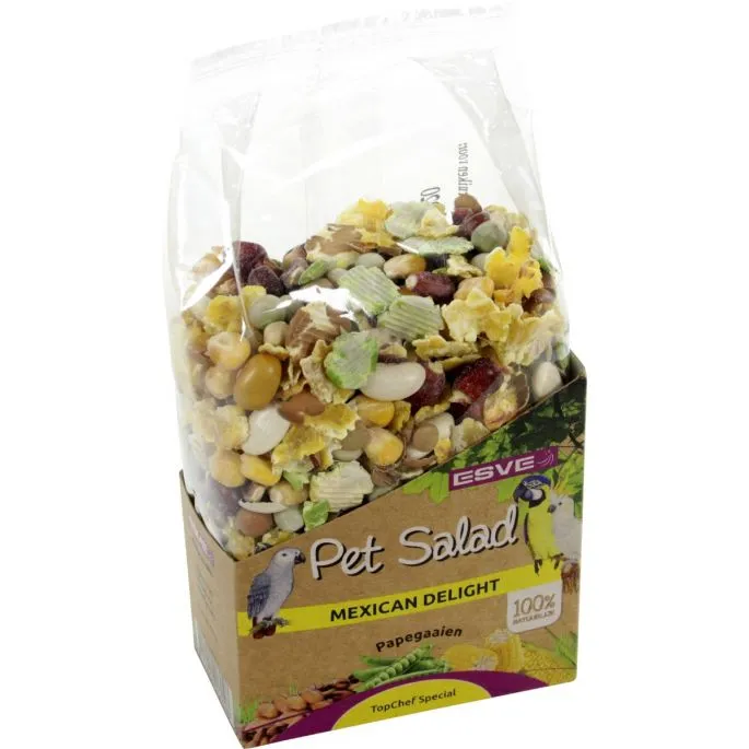 ESVE Pet Salad is een uitgekiend recept van bonen, erwten en mais. Papegaaien vinden het heerlijk en bovendien zijn deze hoogwaardige ingrediënten erg gezond.