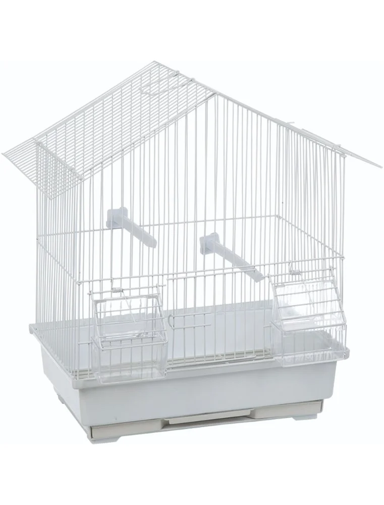 Vogelkooi Lombok is een leuke vogelkooi. Wat deze vogelkooi zo leuk maakt is het puntdakje. De vogelkooi is al voorzien van 2 zitstokjes en twee openingen voor voederbakjes. Voor extra speeltjes neem eens een kijkje bij speelgoed